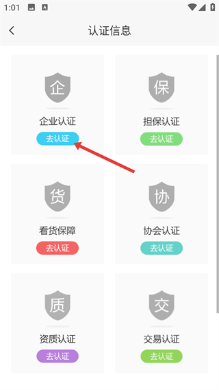 3、在认证信息页面,选择【企业认证】下方的【去认证】选项,进入对应的认证界面呀。
