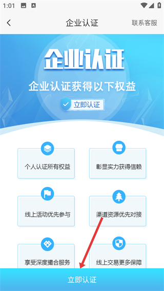 4、最后在企业认证页面,点击底部的【立即认证】按钮,即可开始企业认证流程啦。
