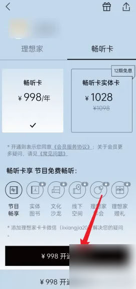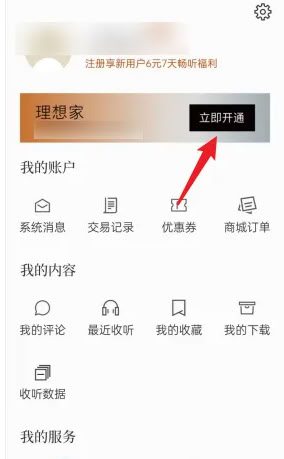 5、进入会员页面后,点击下方【开通此压畅听卡】功能完成开通。