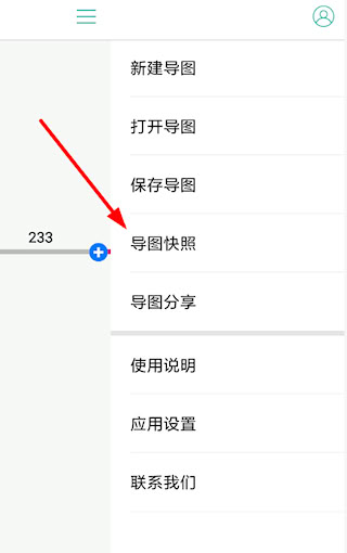 1、打印手机创建的思维导图,需先进入软件主页,点击右上角横杠按钮,选择“导图快照”功能。