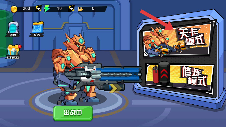1、在游戏主界面,点击右侧的【关卡模式】进入游戏关卡。