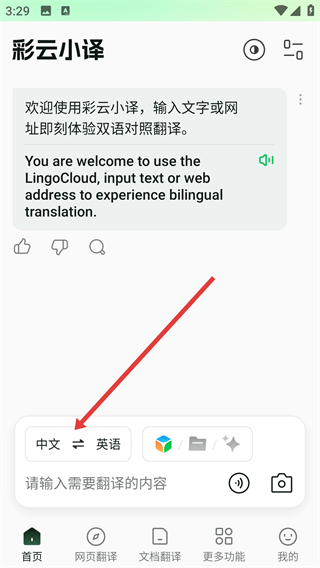 1、下载安装应用,进入后点击文字页面输入框,粘贴需翻译的网页地址链接。