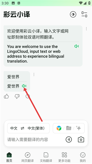 4、翻译完成后,点击翻译结果旁的语音图标,就能听到翻译内容的发音,助力我们更好地理解翻译结果哟。