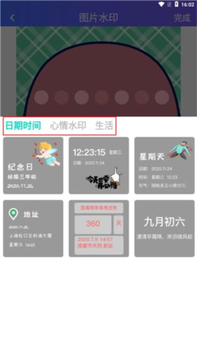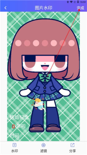 5、确认水印参数后点击“完成”,即成功为照片添加水印。
