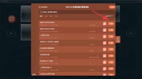 2、找到“TRS12火车模拟内置模组组”,筛选想下载的模组(以上海蒸汽机车为例)。