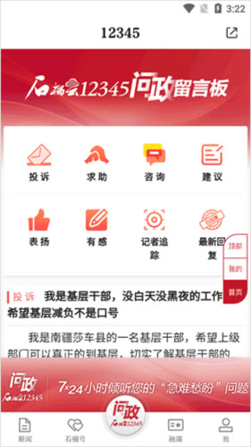 3、在问政中,可进行投诉、求助、咨询和建议等操作;