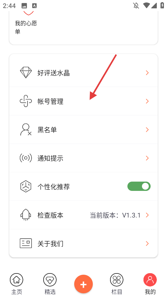 2、在个人页面点击【帐号管理】,进入帐号管理界面。