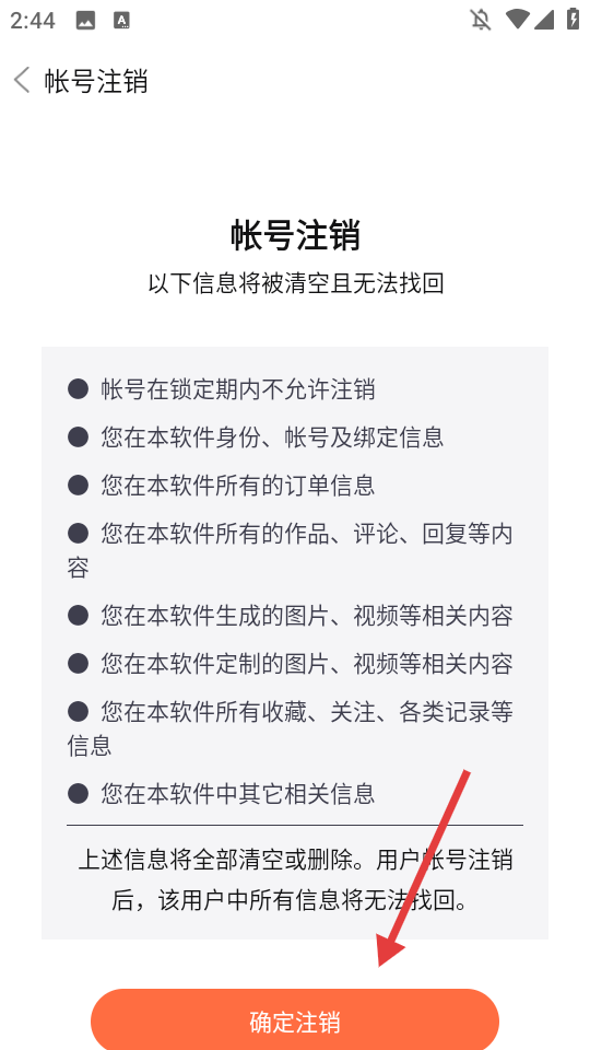 4、仔细阅读帐号注销信息,确认后点击【确定注销】,完成账号注销操作。