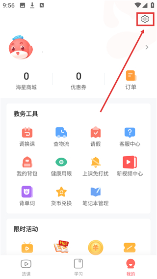 1、在课程界面底部,点击【我的】按钮进入个人中心。