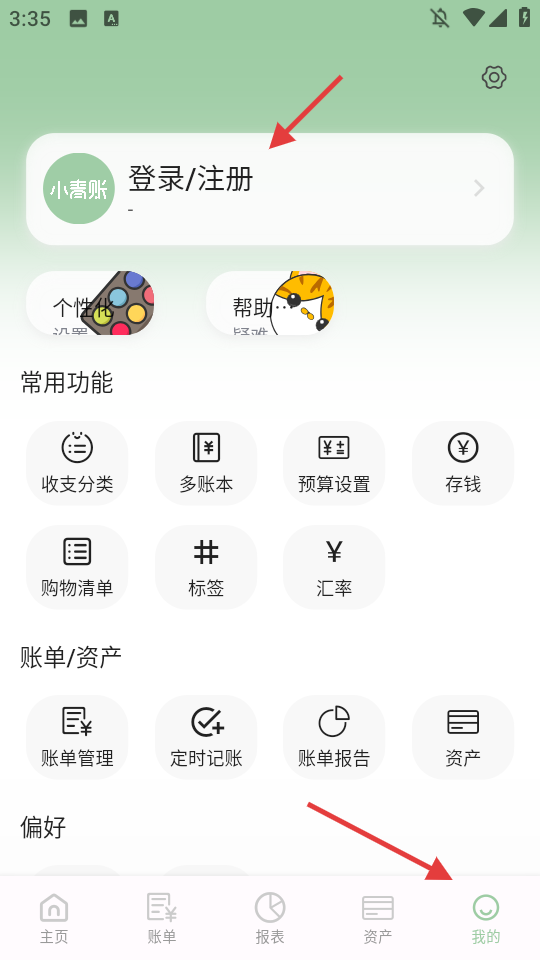1、在小青账APP底部点击【我的】。