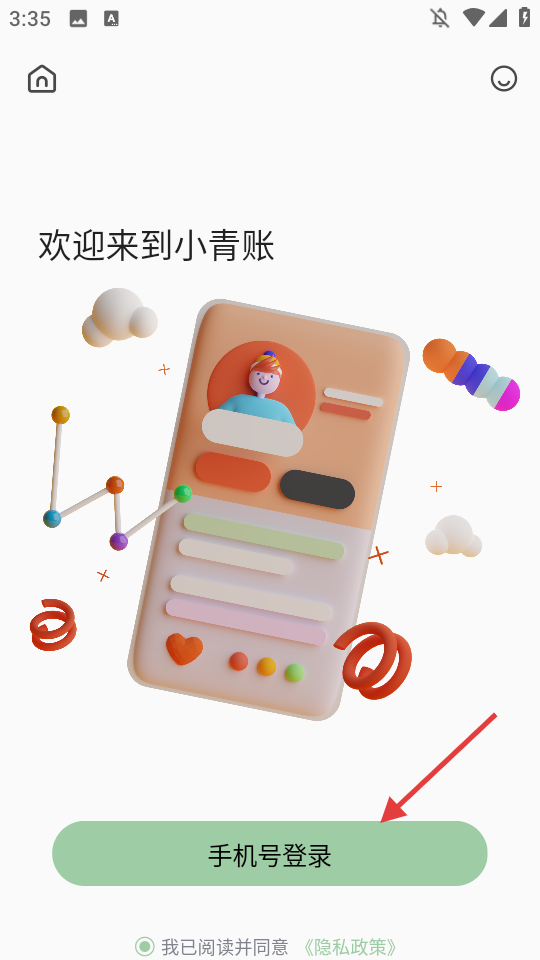 1、打开小青账app,根据提示完成注册登录流程