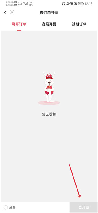 3、在可开订单中选择需开票订单,点击去开票即可。
