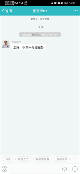 4、提交后进入聊天界面,按医生提问回答后,医生将开具处方药。