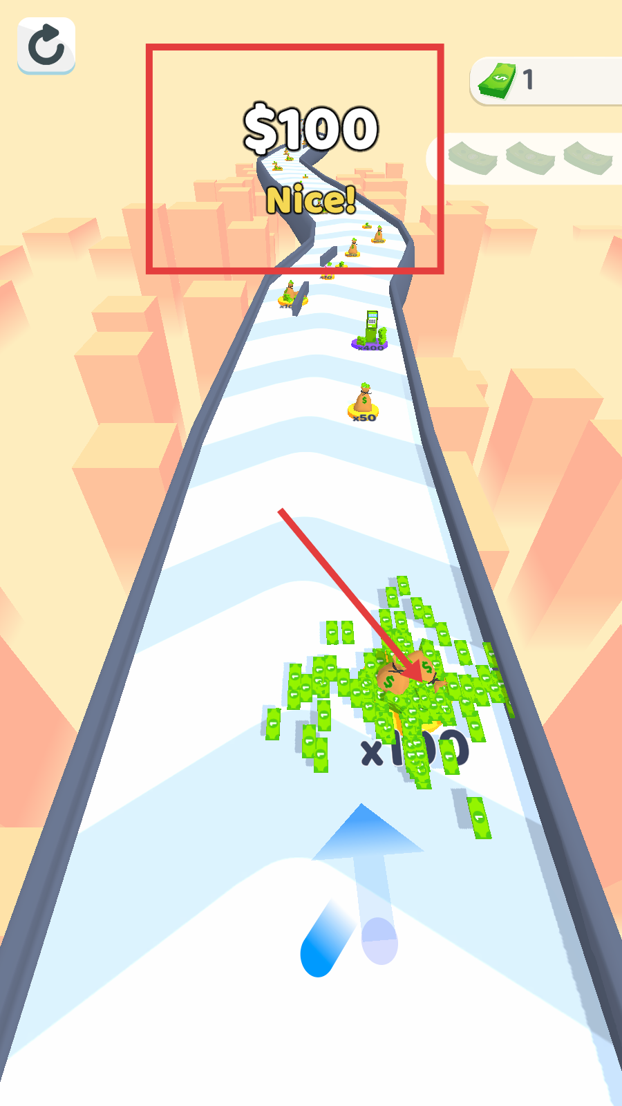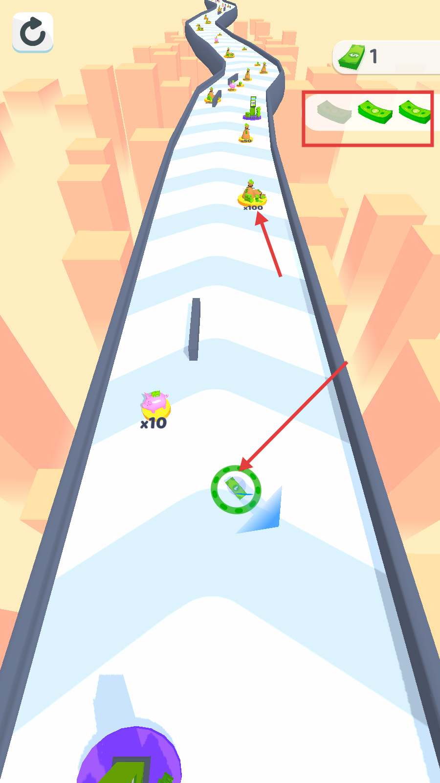 3、道具增益系统:赛道中随机出现加速、磁吸等道具,可以帮助更高效地收集钞票和通过复杂区域。