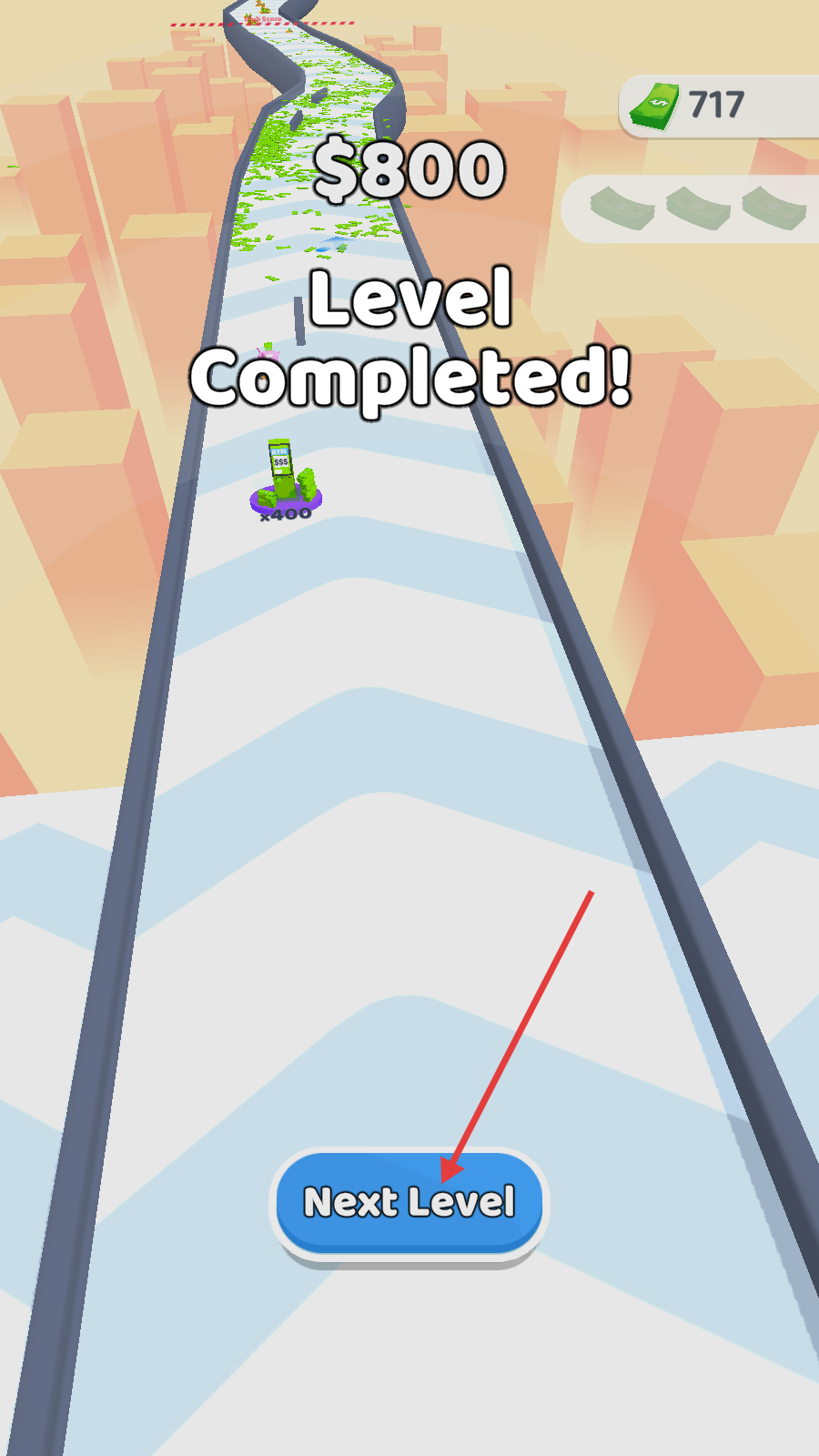 4、持续命中目标积累金钱,成功完成当前关卡后,点击【NextLevel】按钮进入下一关。