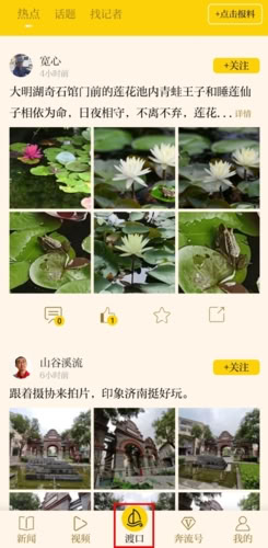 3、渡口页面:类似手游与朋友圈形式,可分享身边事情