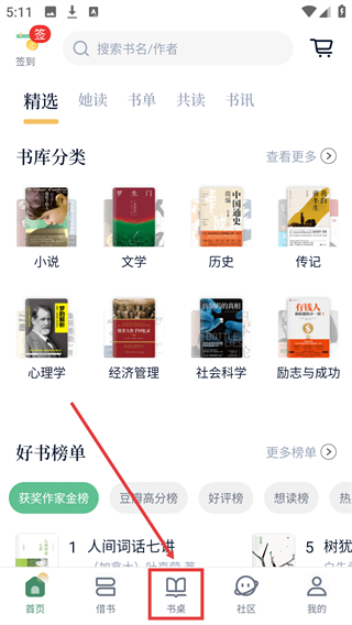 1、在读书首页,点击底部【书桌】进入对应页面。