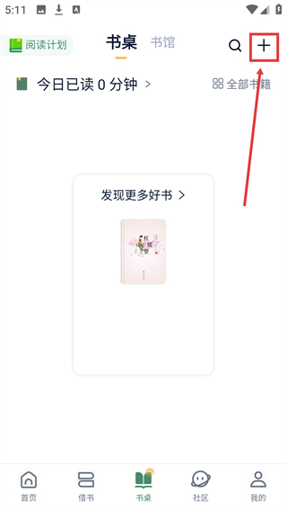 2、进入【书桌】页面,点击右上角的【+】按钮可展开操作选项。