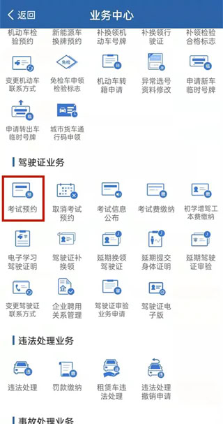 2、在业务中心点击考试预约,选择考试场地即可。