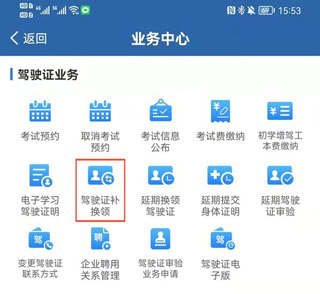1、登录交管12123APP后,通过【业务中心】→【驾驶证补换领】,进入期满换领流程。