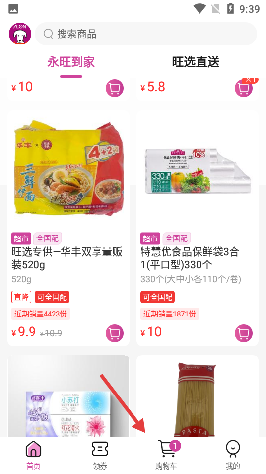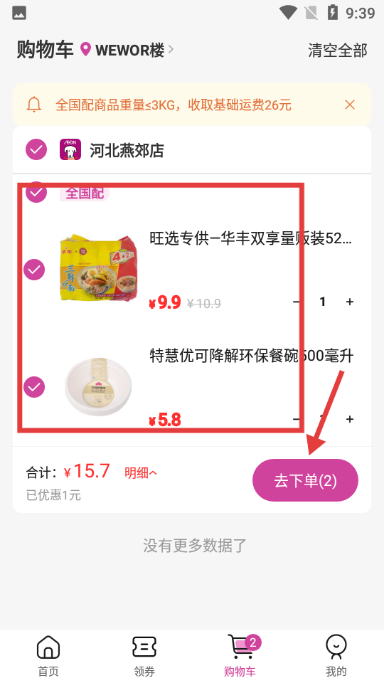 3、点击【购物车】,进入购物车页面。