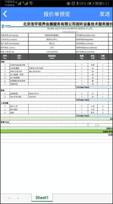 4、所有报价单支持EXCEL格式预览及发送至公司。