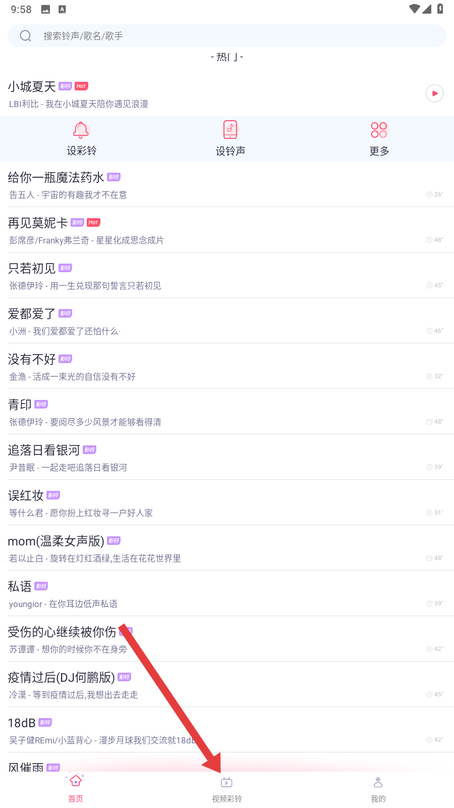 1、我们打开酷音铃声,点击底部【视频彩铃】,即可进入视频彩铃的选择界面啦。