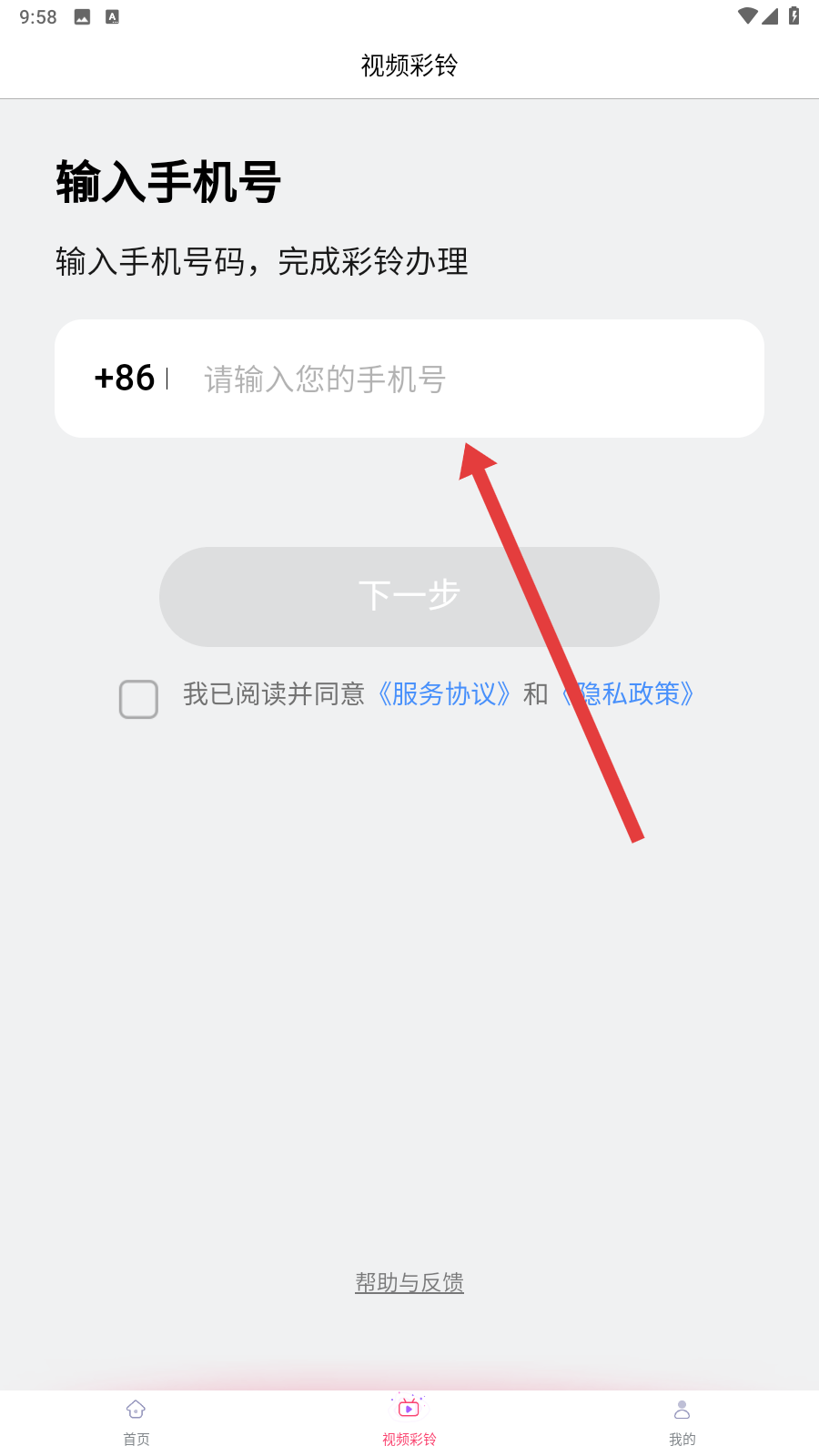 4、最后输入手机号,勾选同意协议,点击下一步,便可完成视频彩铃的办理啦。