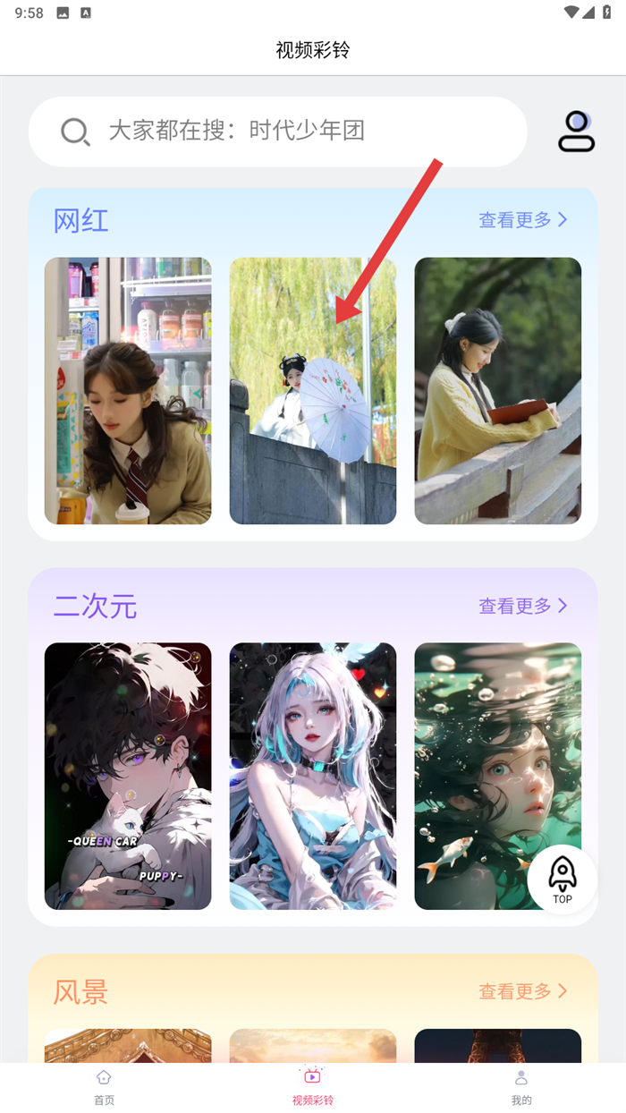2、在【视频彩铃】界面,我们可挑选不同分类的视频,比如点击【网红】类里喜欢的视频进入详情页哦。