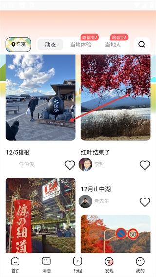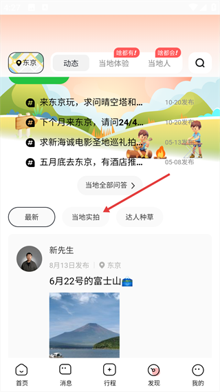 2、在【发现】页面,点击【当地实拍】标签,查看当地相关的实拍动态。