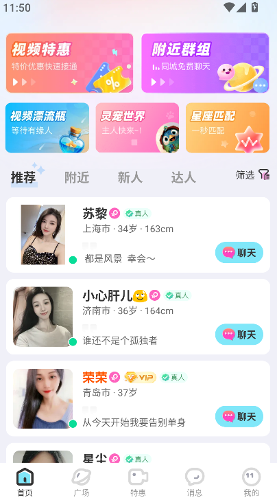 1、进入软件首页后,可在推荐好友栏目中查看系统根据兴趣与活跃度匹配的好友列表,方便寻找志同道合的交流对象。