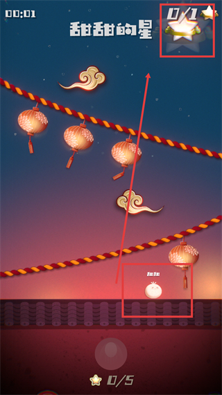 3、【甜甜】跳跃到绳索或灯笼上,收集到星星。