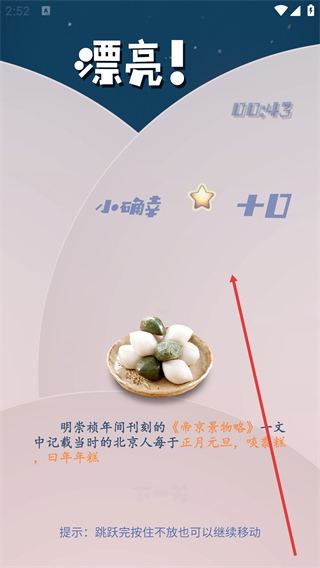 甜甜的星是一款休闲益智类跳跃解谜手游,玩家通过点击屏幕操控小汤圆角色进行跳跃闯关探索美食世界。核心玩法融合动作操作与传统节气文化,关卡设计对应24节气与重要节日场景。收集金色星星触发超级跳跃能力突破地形限制,解谜系统要求动态思考搭配操作技巧。四季主题场景搭配中华美食元素,知识科普通过结算界面传递文化价值,兼具娱乐性与教育意义。