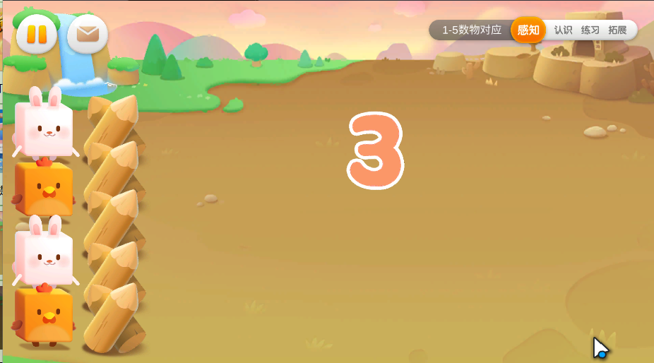 4、完成点击后,页面自动显示数字“3”,表示对应的数量匹配正确。
