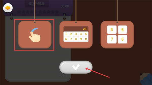 3、进入【5以内加法】练习界面,选择模式,点击下方确认按钮。