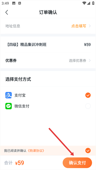 4、在订单确认页,点击【确认支付】,完成课程购买。