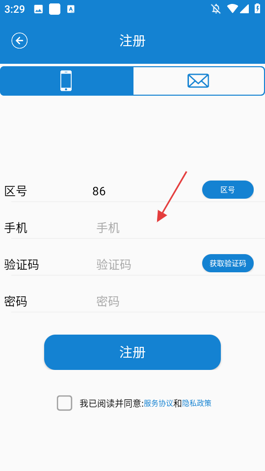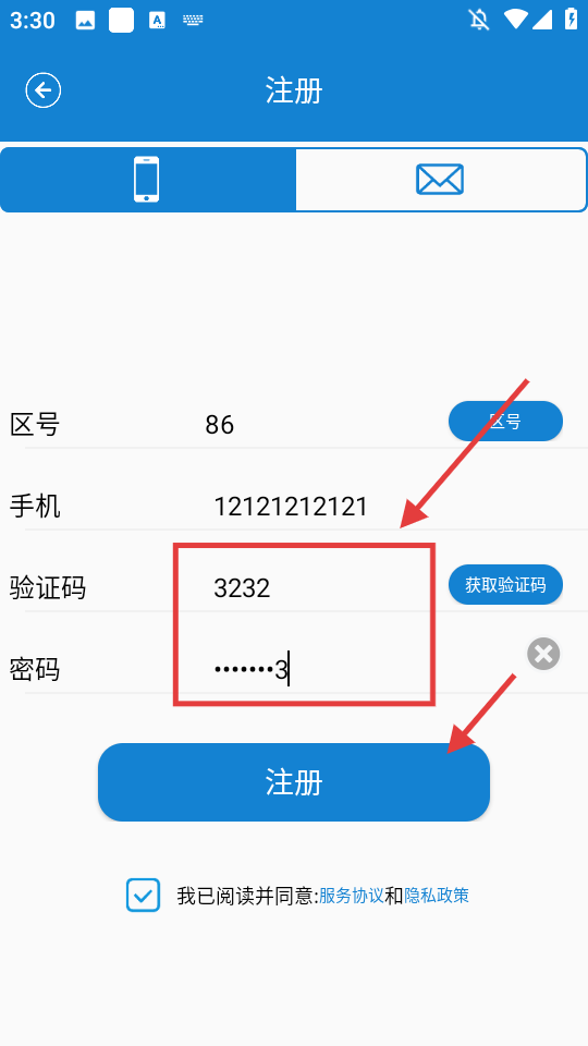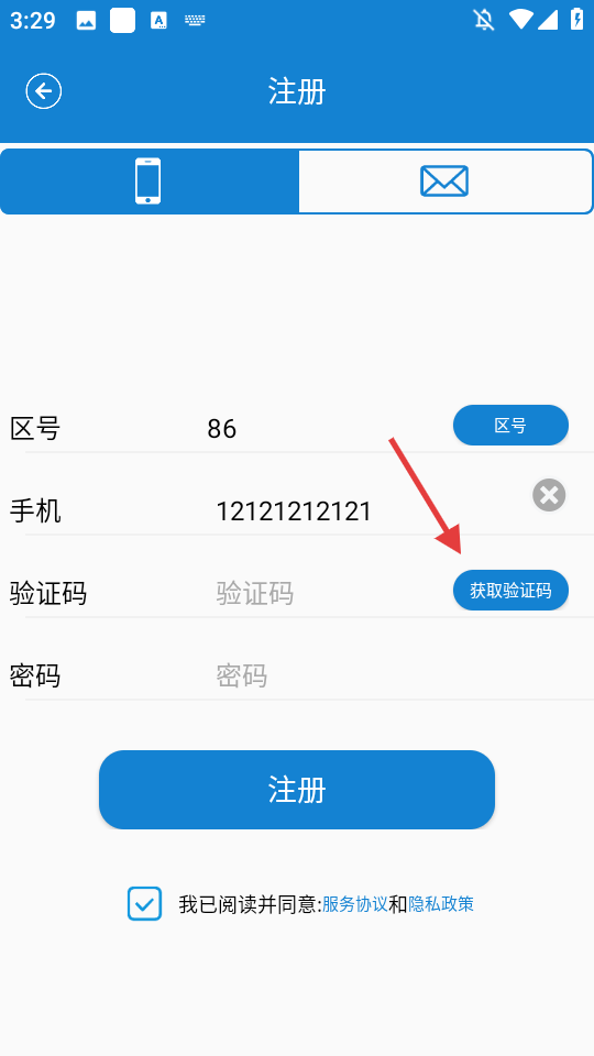 4、输入收到的验证码,设置登录密码,点击【注册】,完成账号注册操作。