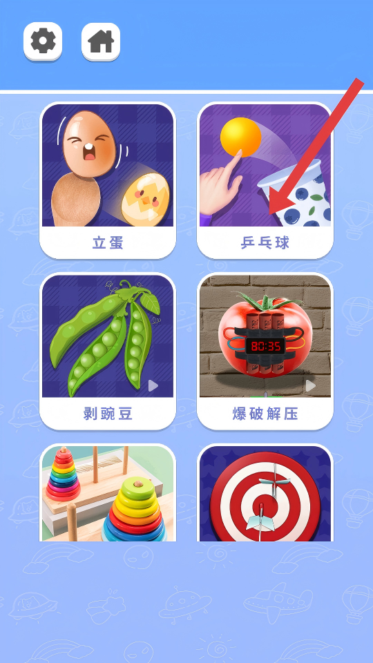 1、进入游戏主界面,根据【红箭头】指示,点击【乒乓球】选项,进入该小游戏关卡。