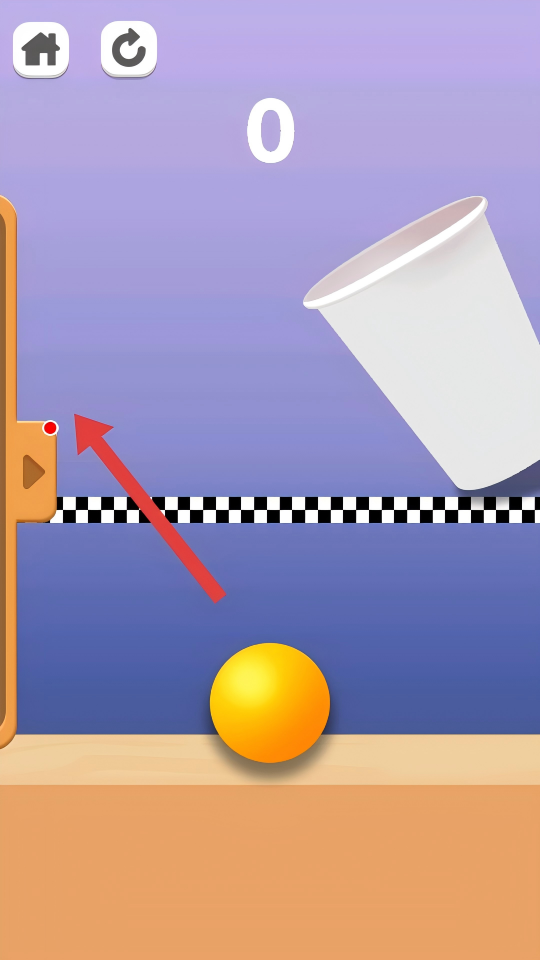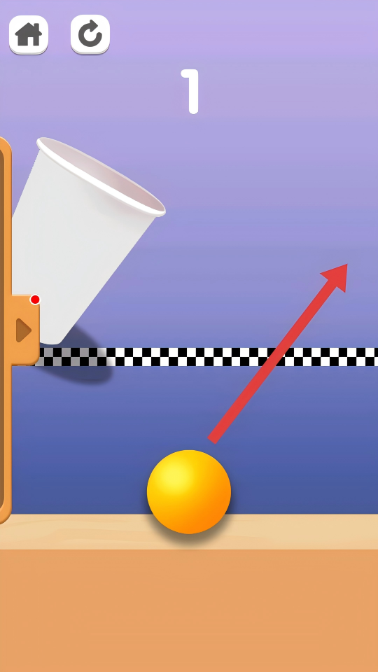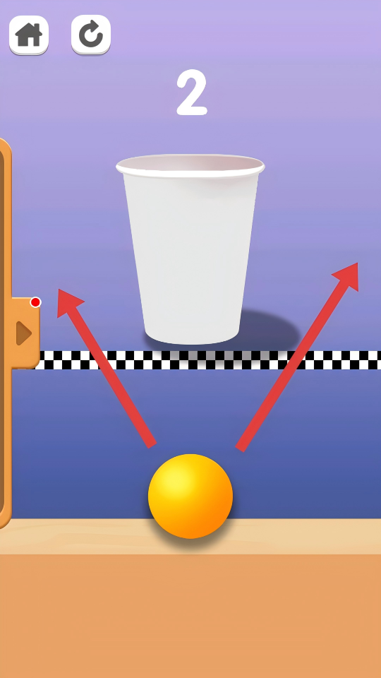 3、进入第二关,按照【红箭头】方向引导乒乓球,使其顺利落入纸杯中即可通关。