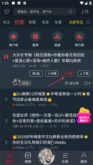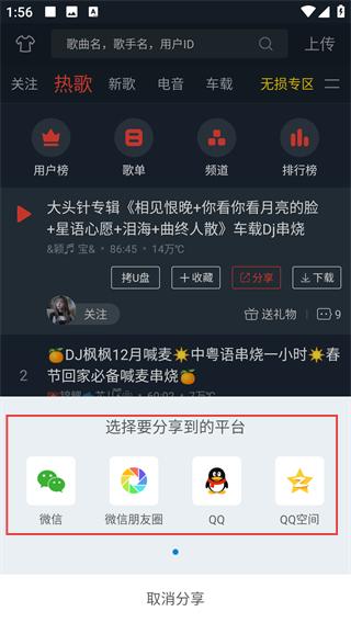 1.海量曲库:涵盖中文、英文、日韩DJ舞曲,车载、夜店、喊麦等风格,资源超全。