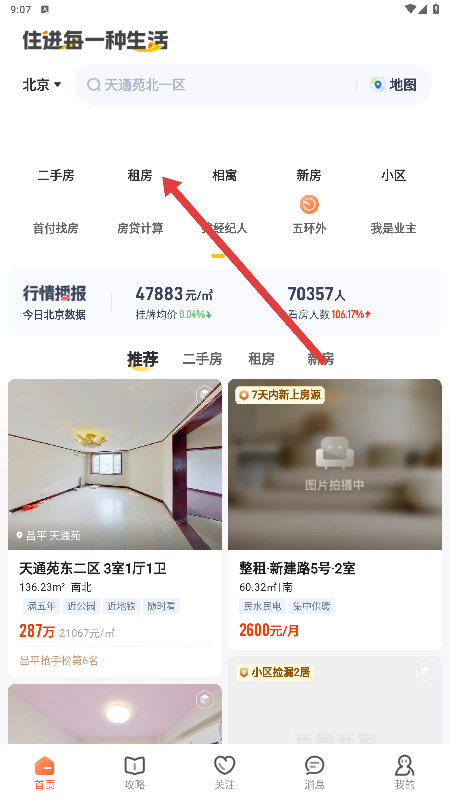 1、打开我爱我家APP,在首页找到【租房】选项点击,即可进入租房专区哦。