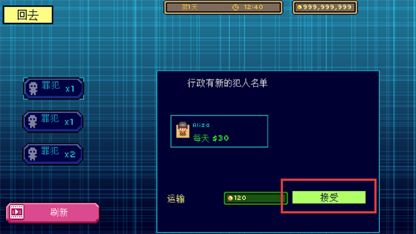 2、在行政犯人名单界面点击【接受】按钮获取【Aliza】,需合理规划角色数量控制成本。