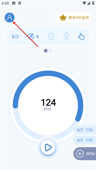 3、回到主界面,点击底部播放控制按钮,启动节拍器。