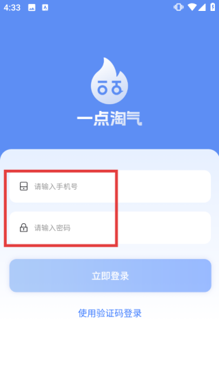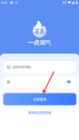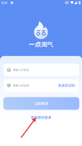 1、在一点淘气登录页,点击【使用密码登录】,切换密码登录模式。