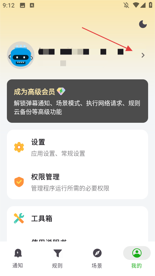 2、点击头像右侧的箭头,进入个人信息页面。