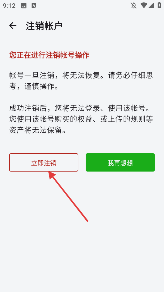 4、仔细阅读注销提示后,点击【立即注销】,完成账号注销操作。