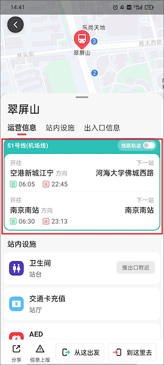 4、确定起点和终点后,查看运营信息、站内设施及出入口信息。