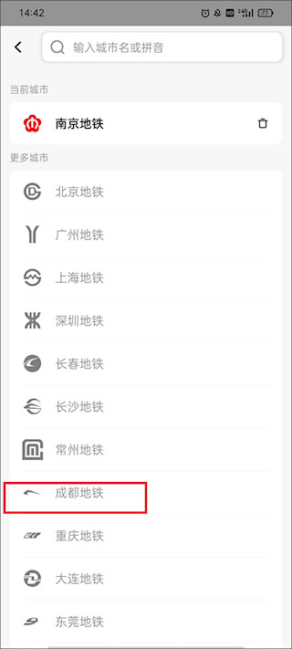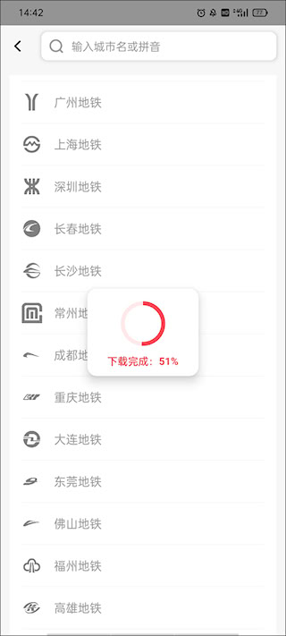 2、地铁离线查询:下载城市数据包后,无需网络即可查询地铁信息。