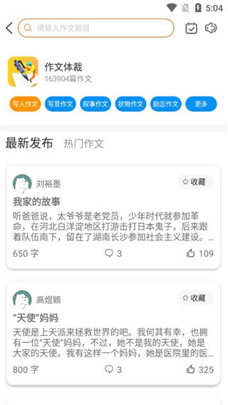 3、随意点击一个分类,可以看到最新发布的热门作文。