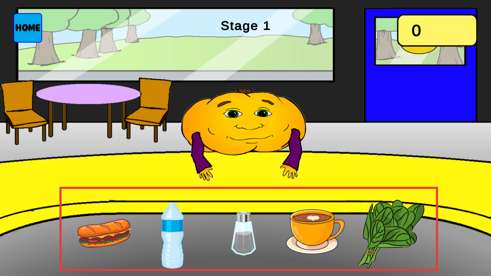 4、将选中的食物递给南瓜形象的角色,完成该阶段任务。